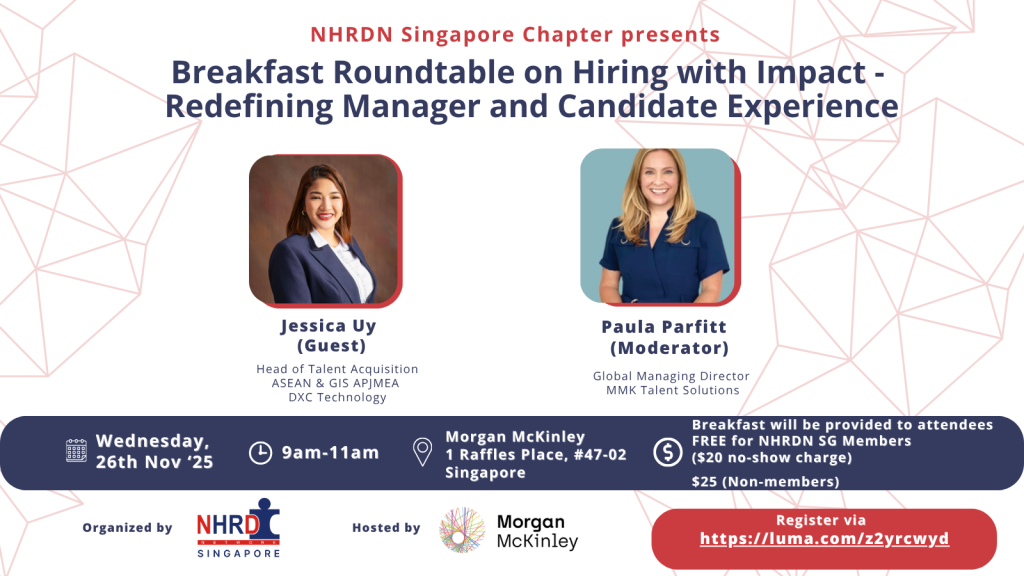 NHRD Network, Singapore Chapter partnered with Lakshmi Murlidharan at Morgan Mckinley for an insightful roundtable on “Hiring with Impact – Redefining Manager and Candidate Experience” on November 26, 2025 at Morgan Mckinley office.